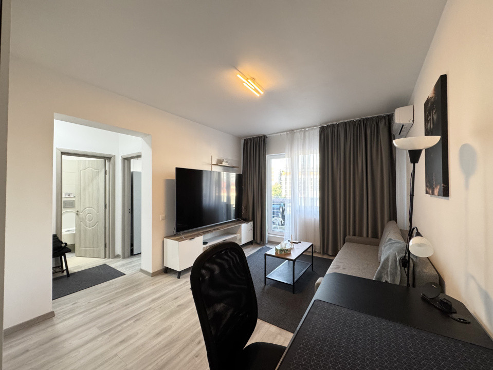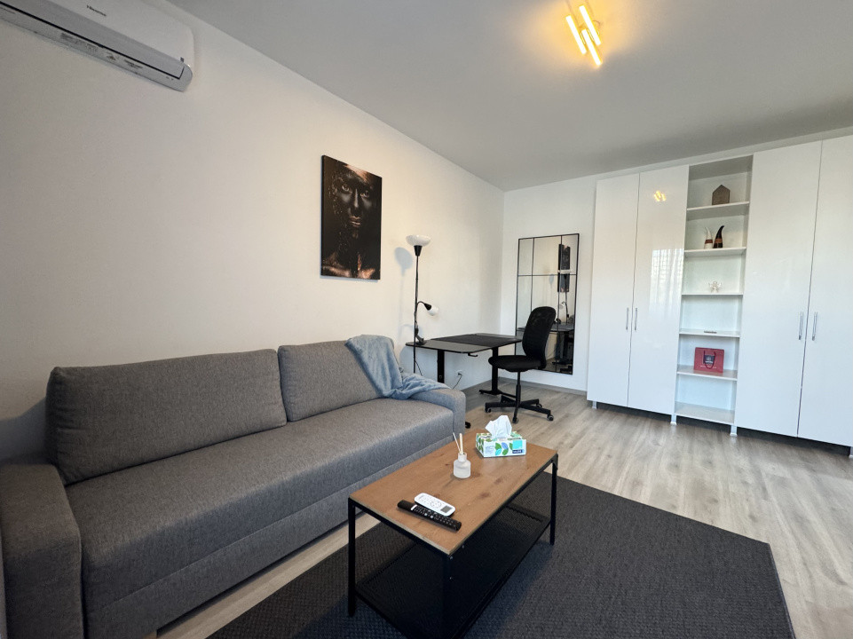 Garsoniera are o suprafață utilă de 32 mp, la care se adaugă un balcon deschis de 4 mp, ideal pentru relaxare. Este amenajată cu mobilier modern, finisaje de calitate superioară și vine complet echipată cu electrocasnice: